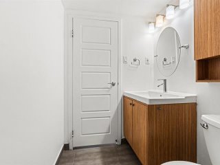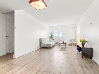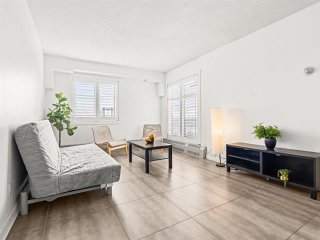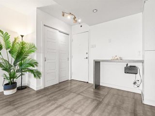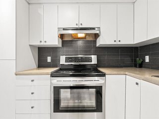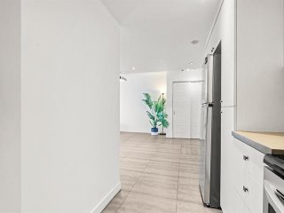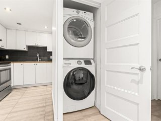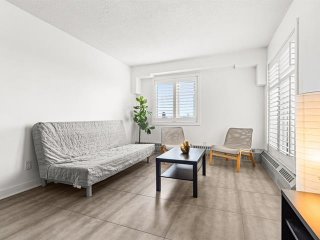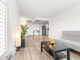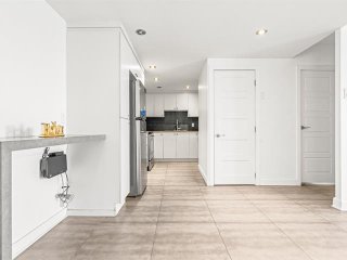 La cuisine, pratique et bien intégrée, s'harmonise parfaitement avec l'aire de vie. La chambre à coucher offre un espace confortable, tandis que la salle de bains rénovée ajoute une touche actuelle et soignée. L'unité est équipée d'installations pour laveuse et sécheuse, facilitant le quotidien. Les électroménagers sont inclus dans la vente.